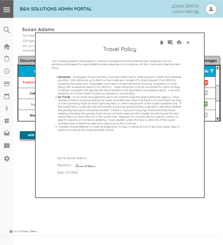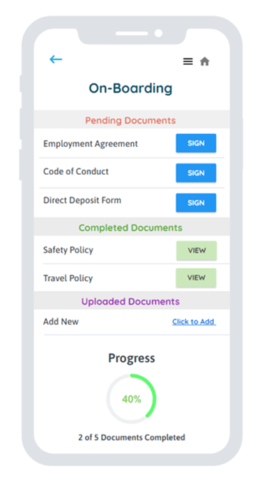 To enhance usability the Employee Portal can be accessed via desktop or mobile, however the mobile platform is the suggested version for Employee use. The mobile Employee Portal allows users to complete all essential on-boarding tasks such as submitting and signing company documents, as well as uploading any primary documentation such as IDs. If any of the optional features are elected, these tasks can also be completed by utilizing the mobile platform. Once a document is submitted an Employee is prohibited from editing or deleting a document.