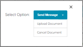 If the user clicks on a red Past Due document a pop up will appear with the options to Send a Message, Upload Document, or Cancel Document. If the user chooses to Send a Message, a message box will appear where the user can draft and send the message directly to the employee, followed by a confirmation that the message has been sent.