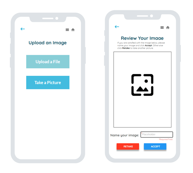 Users can upload an image or take a photo by clicking Click to Add on the On-Boarding page under the Uploaded section. If the user takes a photo, they will be asked to review before final submission.